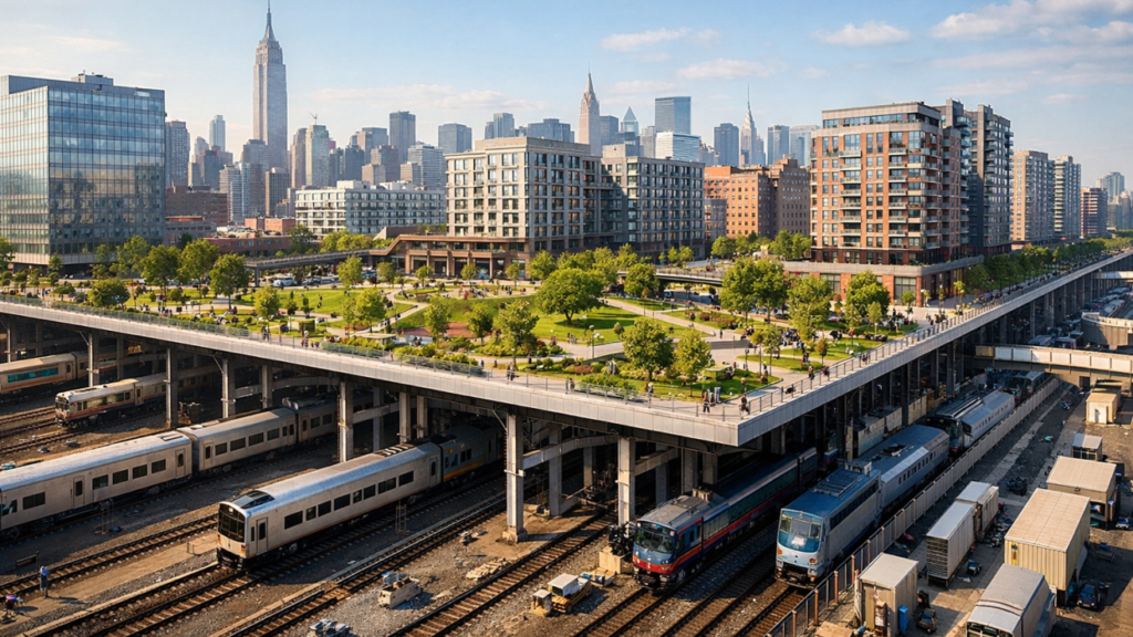 La propuesta actual estima una inversión de 21,000 millones de dólares, destinada a crear un entorno de uso mixto que conecte vecindarios históricamente divididos por las vías, como Sunnyside y Astoria.