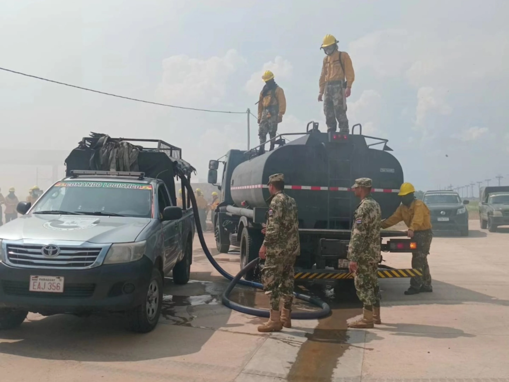 Un amplio operativo integrado por unos 100 efectivos del Ejército Paraguayo, la Armada, el Comando Logístico y la Fuerza Aérea se encuentra desplegado desde este sábado en el distrito de Nueva Asunción (Departamento de Presidente Hayes), combatiendo múltiples focos de incendios forestales en cercanías del Puente Héroes del Chaco.